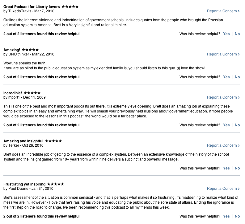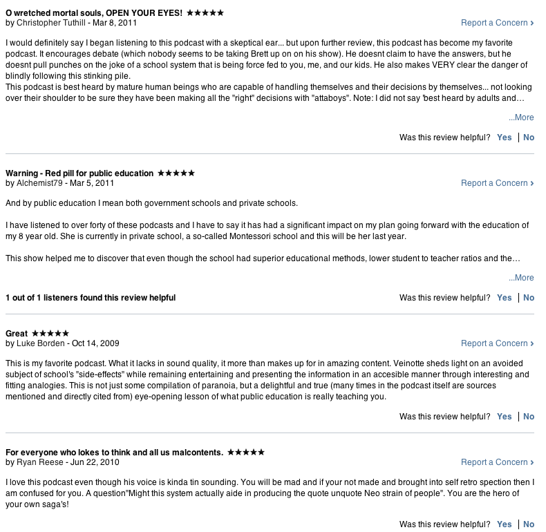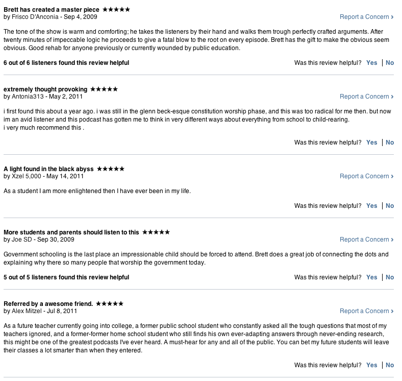 "Thanks for the fantastic podcast. It's so much more than just the END of public education. It's the END of the state and beautifully stated at that!" -Brandon
